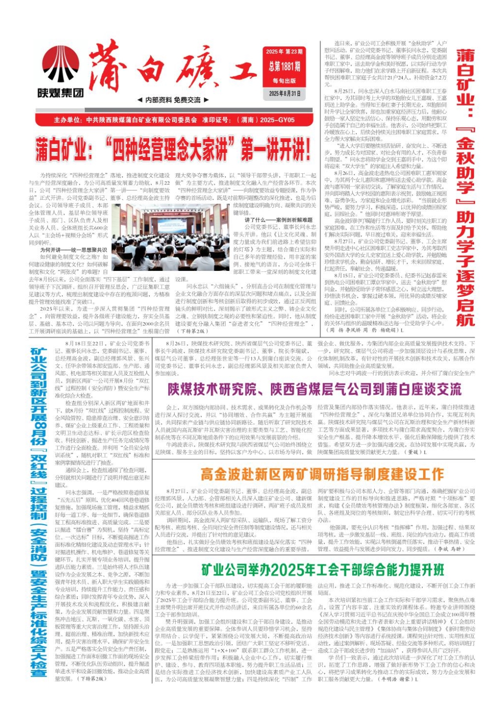蒲白矿工报矿业公司召开党委理论学习中心组学习(扩大)会议 矿业公司召开党委理论学习中心组学习(扩大)会议 问永忠到新区两矿检查指导安全生产工作 矿业公司工会开展职工生活品质及安全工作专项监督检查 图文 矿业公司开展2025年“国庆”节前非煤单位安全消防、“两外”及三季度“双红线”综合检查 矿业公司举办会计人员继续教育培训 喜讯!建新煤化通过2025年度ISO三体系监督认证